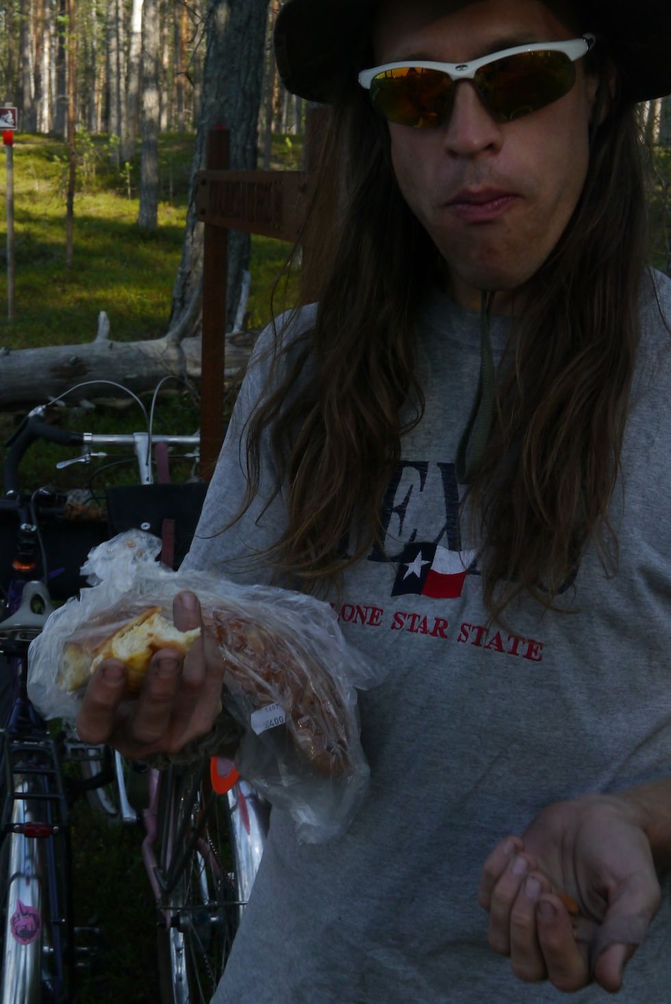 Minun täytyi palata töihin Töölön Pyörään. Koitimme ensin liftata turhaan asuntoautojen kyytiin, mutta kaksi ihmistä ja kaksi pyörää on ymmärrettävästi liikaa useimmille. Lopulta bussilla ja junalla noin yksitoista tuntia matkustettuani pääsin sunnuntai-illaksi kotiin ja maanantai-aamuksi töihin lepäämään erittäin raskaan retken jälkeen!
