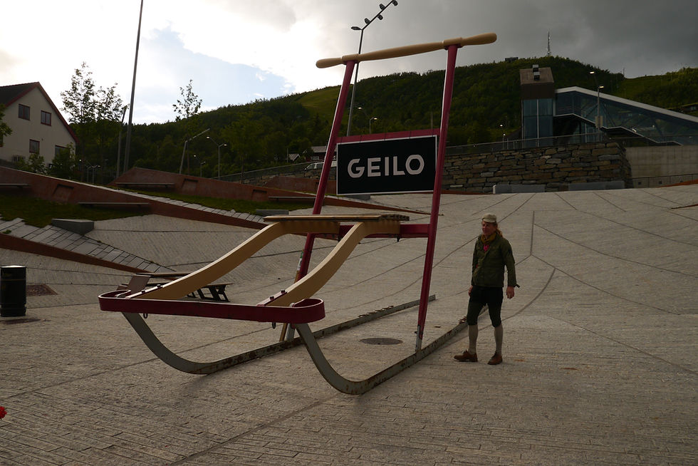 Seuraavana päivänä saavumme turistiseen laskettelukeskuskaupunkiin Geiloon. Tunnelmaa epätyydyttävän falafel-aterian jälkeen. Norjan paljon puhuttu korkea hintataso tuntui ehkä eniten ravintoloissa, ei niinkään muualla. Keskivertoa huonompi, selkeästi halvimmista raaka-aineista tehty falafel-ateria maksoi muistaakseni noin 16 euroa. Ja vaihtoehtoja pienemmissä kaupungeissa oli erittäin vähän. Söimmekin lähinnä eväitä.