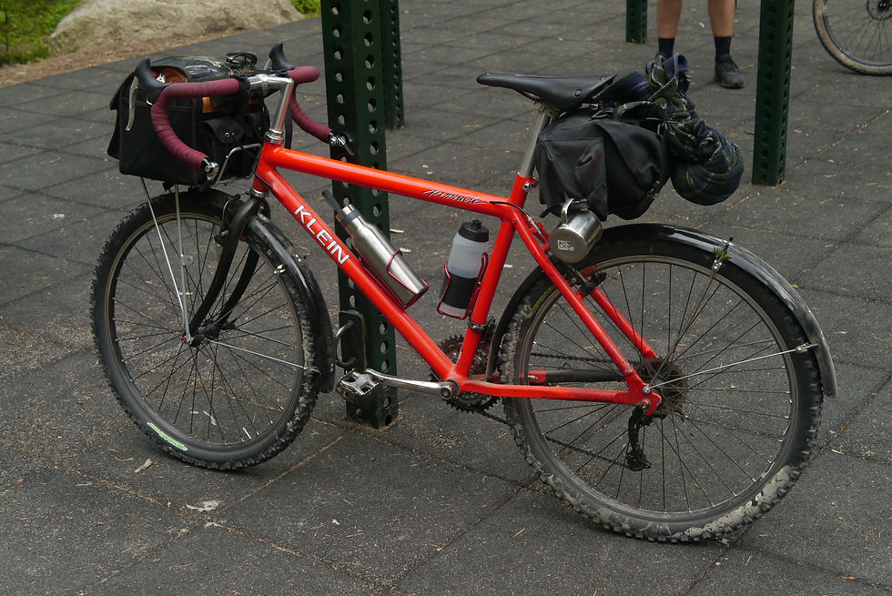 Every good bike used for everyday life needs a carry solution. Luckily pretty much all ATBs come with rear rack mounts at least. Only racing-spec frames have these left out. A normal aluminium rear rack bought from a recyclery like Uusix-verstas would be my choice if I was on a budget. Add a large Carradice bag like the Camper or Super C, with or without the quick release, and you have a very decent everyday/day tripping bag setup. If you are tall enough and have your handlebar set up high you can usually run a Carradice saddlebag in the front as well. I’ve done camping trips with just two Super Cs and a pair of large water bottles. Most forks do not have front rack mounts, which makes these bikes less easy to convert to full-on camping bikes. The Pelago commuter front rack is a decent choice but it is quite heavy, the side pannier mounts are too far forward for optimal weight distribution and it’s not the cheapest either. A fork with lowrider eyelets works great for fitting more bags, even though the low-mounted panniers can be a problem if you do real off-road touring as they tend to hit obstacles constantly.